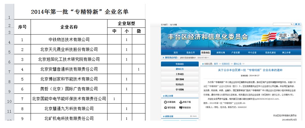 日前,我公司已通過豐臺區(qū)經(jīng)濟和信息化委員會認(rèn)定,被評為 “專精特新”企業(yè)。